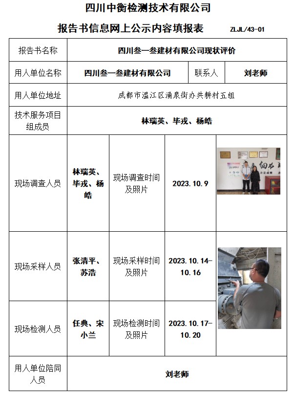 四川叁一叁建材有限公司現(xiàn)狀評價(jià)