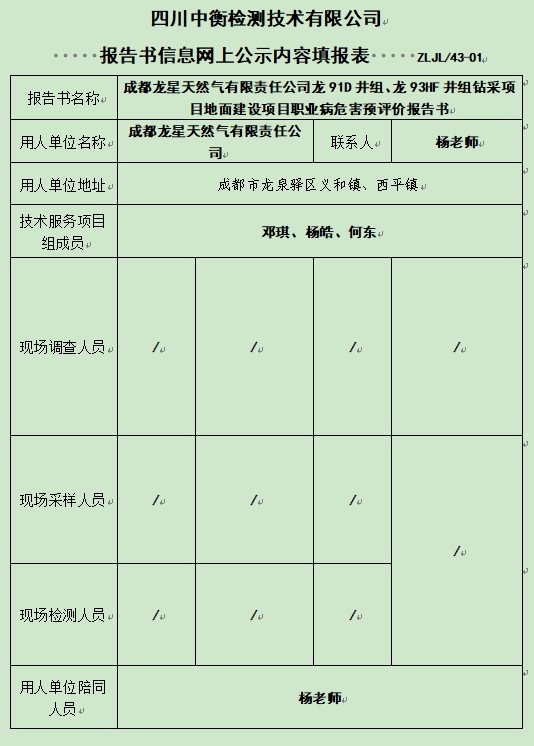 成都龍星天然氣有限責(zé)任公司龍91D井組、龍93HF井組鉆采項(xiàng)目地面建設(shè)項(xiàng)目職業(yè)病危害預(yù)評(píng)價(jià)報(bào)告書(shū)