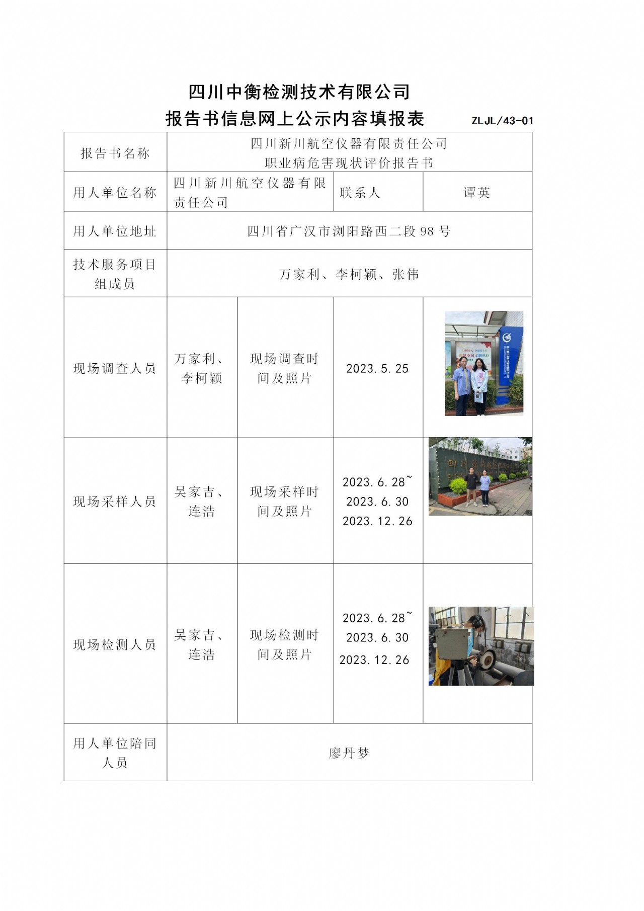 四川新川航空儀器有限責任公司 職業(yè)病危害現(xiàn)狀評價