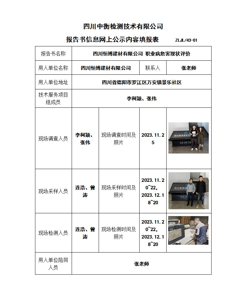 四川恒博建材有限公司 職業(yè)病危害現(xiàn)狀評(píng)價(jià)