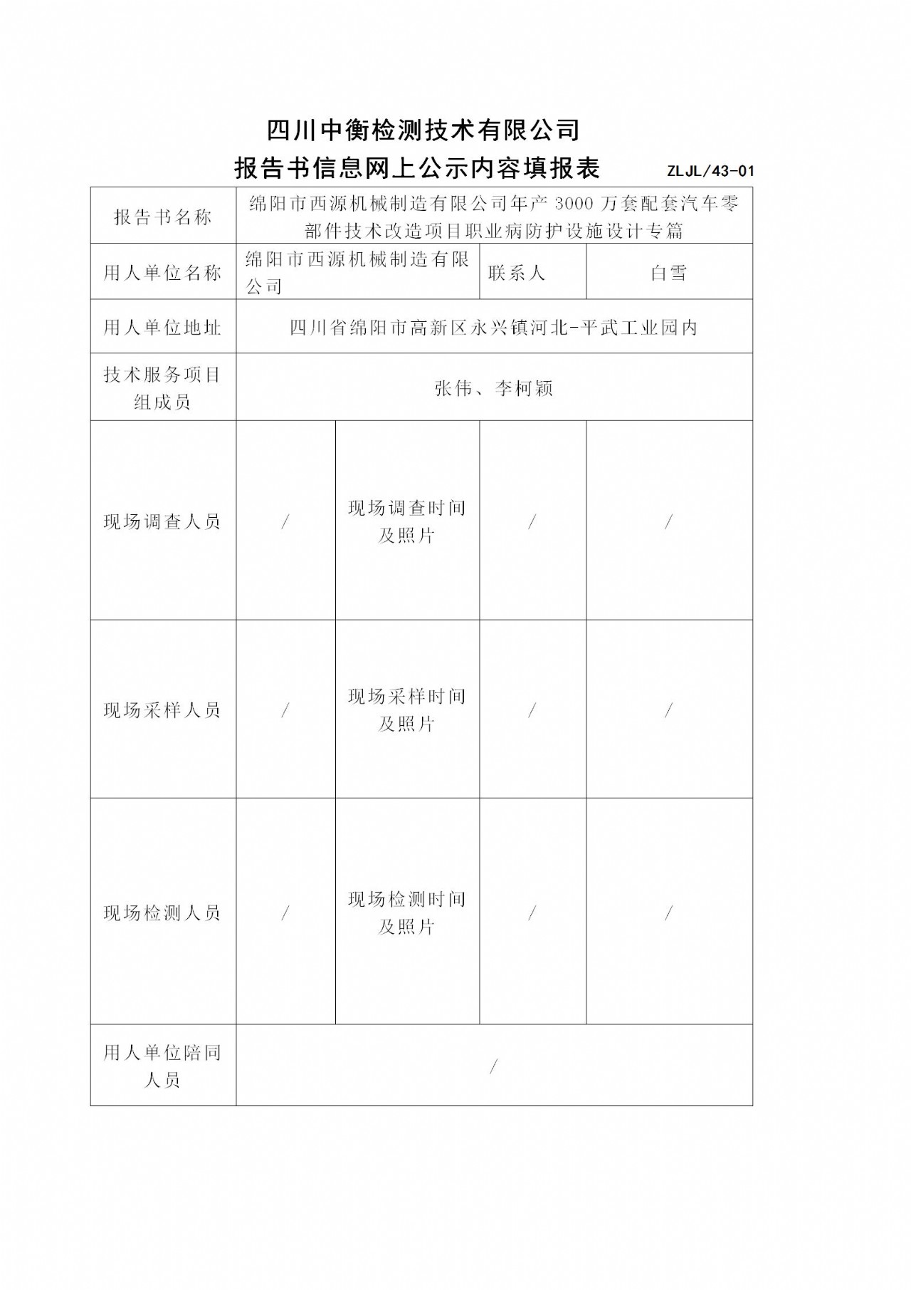 綿陽(yáng)市西源機(jī)械制造有限公司年產(chǎn)3000萬(wàn)套配套汽車零部件技術(shù)改造項(xiàng)目職業(yè)病防護(hù)設(shè)施設(shè)計(jì)專篇