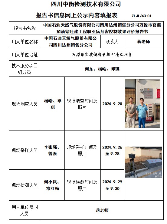 中國石油天然氣股份有限公司四川達(dá)州銷售分公司萬源市官渡加油站遷建工程職業(yè)病危害控制效果評價報告書