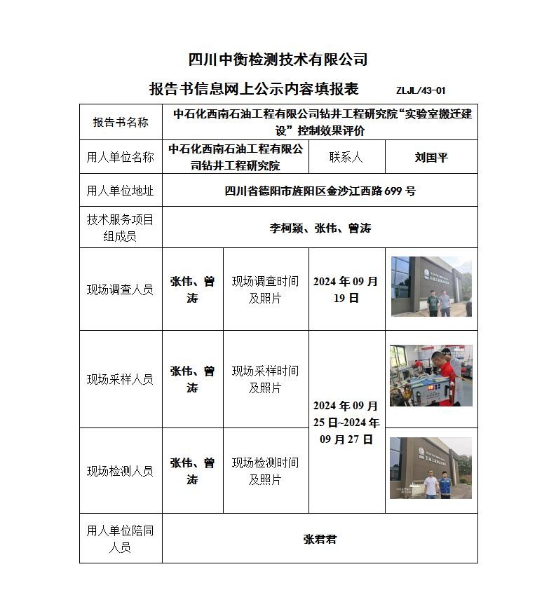 中石化西南石油工程有限公司鉆井工程研究院“實驗室搬遷建設(shè)”控制效果評價