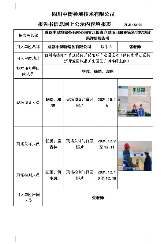 成都中儲糧儲備有限公司羅江糧食倉儲項目職業(yè)病危害控制效果評價報告書