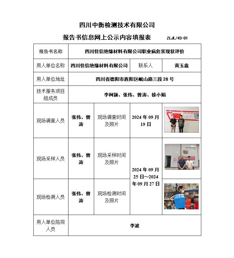四川佳信絕緣材料有限公司職業(yè)病危害現(xiàn)狀評(píng)價(jià)