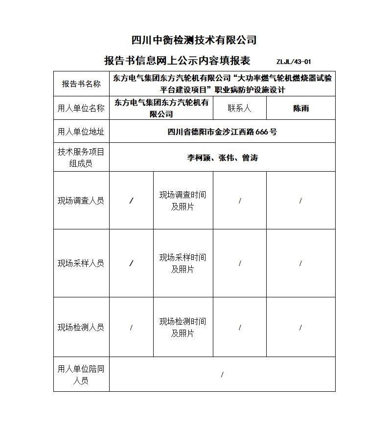 東方電氣集團(tuán)東方汽輪機(jī)有限公司“大功率燃?xì)廨啓C(jī)燃燒器試驗(yàn)平臺建設(shè)項(xiàng)目” 職業(yè)病防護(hù)設(shè)施設(shè)計(jì)